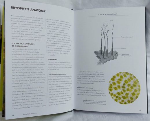 The guide starts with an introduction to the estimated 20,000 species of bryophytes (plants that reproduce by spores rather than seeds) and their evolution over 473 million years since plants first made the transition to life on land. The height of bryophytes is limited by their lack of vascular tissue (xylem and phloem) but this has not hindered their ability to thrive in diverse environments. The general and distinct anatomical features of mosses, liverworts and hornworts are explained with the help of diagrams. Passing reference is made to their symbiotic relationships with fungi, in common with many plants, and also with cyanobacteria, which I am intrigued to learn more about.