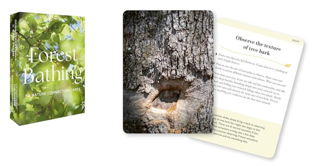The accompanying box contains a concise guide to Forest Bathing plus 50 high quality cards with a forest or tree-related image on one side and a nature connection exercise on the reverse. A beautiful gift for yourself or someone else!